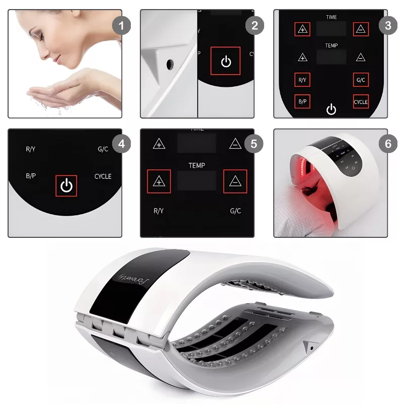 Voit valita kuudesta LED-väristä mukauttaaksesi hoidon mieltymyksiisi. Jokainen niistä kohdistuu eri huoliin, tarjoten henkilökohtaisen ihonhoito-ohjelman.