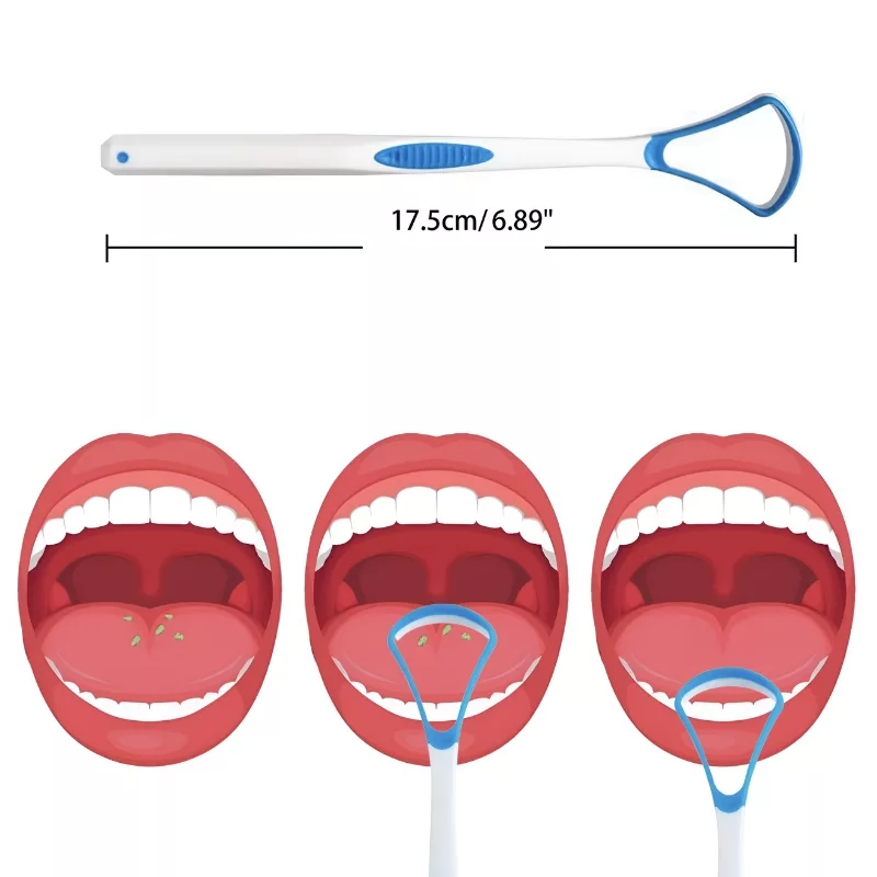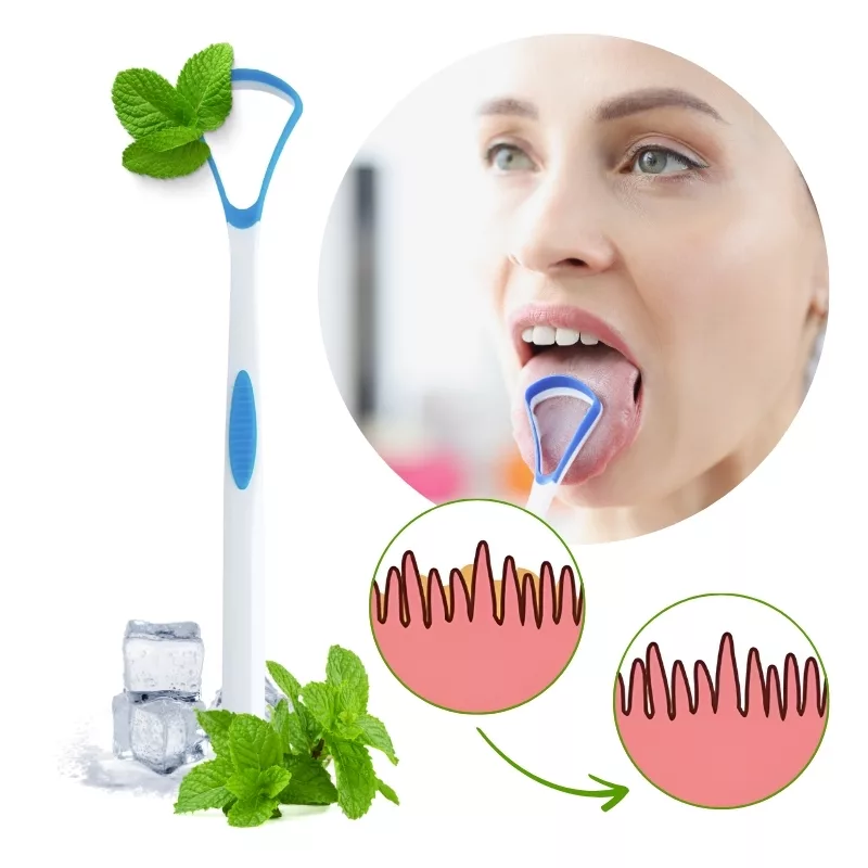 Poista hajun aiheuttajat sekunneissa kielenpuhdistajamme avulla. Kärki on pehmeä ja joustava, eikä aiheuta epämukavuutta tai kipua. Käytä sitä päivittäin parantaaksesi suun hygieniaasi ja lisätäksesi itsevarmuuttasi.