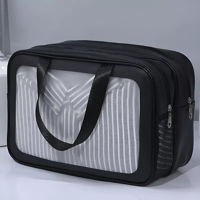 Tämä läpinäkyvä kosmetiikkakotelo auttaa sinua pakkaamaan älykkäämmin ja nopeammin. Kompakti, mutta tilava, se säilyttää kaikki meikkisi yhdessä paikassa. Se on loistava matkoille, työmatkoille tai päivittäiseen käyttöön. Hyvästi unohtuneet tavarat ja sotkuiset vuodot laukussa.