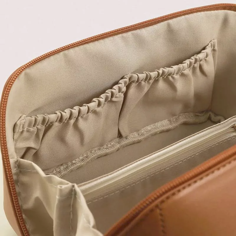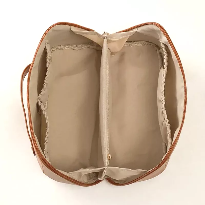 Laukkumme avulla voit lajitella esineet helposti, joten et koskaan tuhlaa aikaa kaivamiseen. On tarpeeksi tilaa harjoille, pulloille ja meikeille. Se vähentää sotkua, ja tekee jokaisesta rutiinista nopeamman ja sujuvamman.